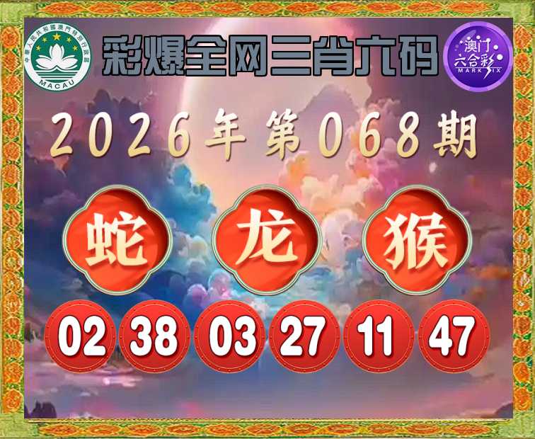 068期:〖彩爆全网〗 📸三肖六码📸【蛇龙猴】开:猴23准