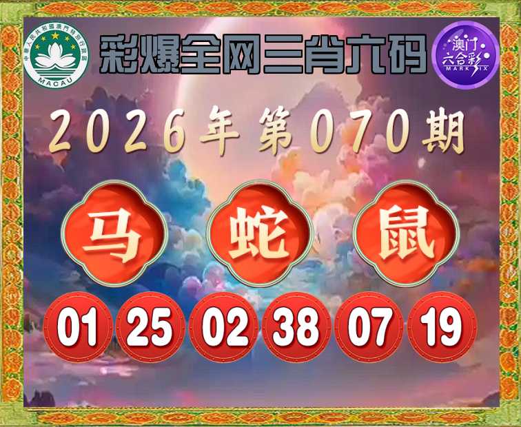070期:〖彩爆全网〗 📸三肖六码📸【马蛇鼠】开:马25准